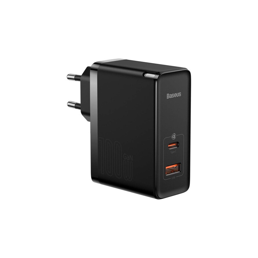 Baseus GaN5 Pro Fast - пристрій для швидкої зарядки ноутбука, телефону або іншого гаджета з двома роз'ємами, має високою загальною потужністю до 100 Вт з реалізацією всієї потужності на один порт Type-C, 60 Вт на USB-A і 95 Вт при залученні двох роз'ємів одночасно. Baseus GaN5 Pro використовує сучасний напівпровідник нітрид галію GaN, який дозволяє отримати більшу потужність заряджання з невеликими фізичними розмірами пристрою. Заряджання підтримує всі основні сучасні технології швидкого заряджання QC4.0+, PD3.0, Huawei Super Charge, FCP 5А, AFC, MTK.