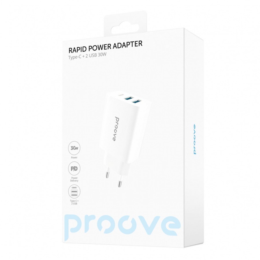 Proove Rapid обладнаний двома портами USB та роз'ємом під Type-C. Що мають загальну потужність у 30W та дозволяють заряджати одразу три різних пристрої. Завдяки своєму розміру та дизайну пристрій не займає багато місця. Що дозволяє використовувати його не тільки вдома, а й під час поїздок
