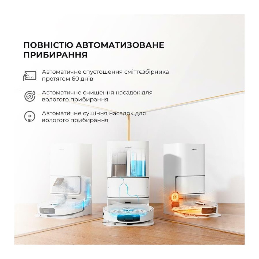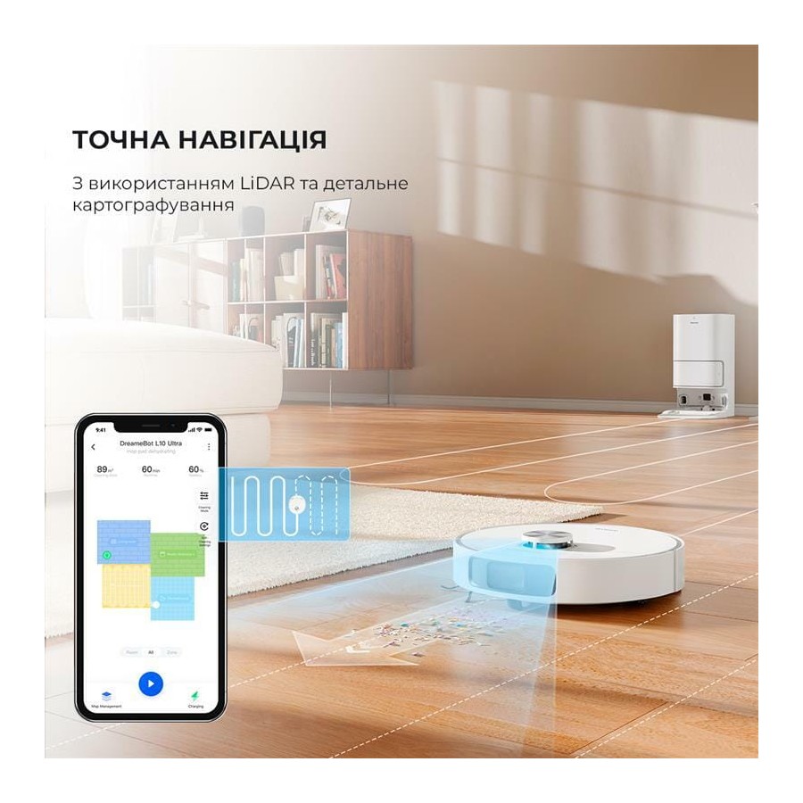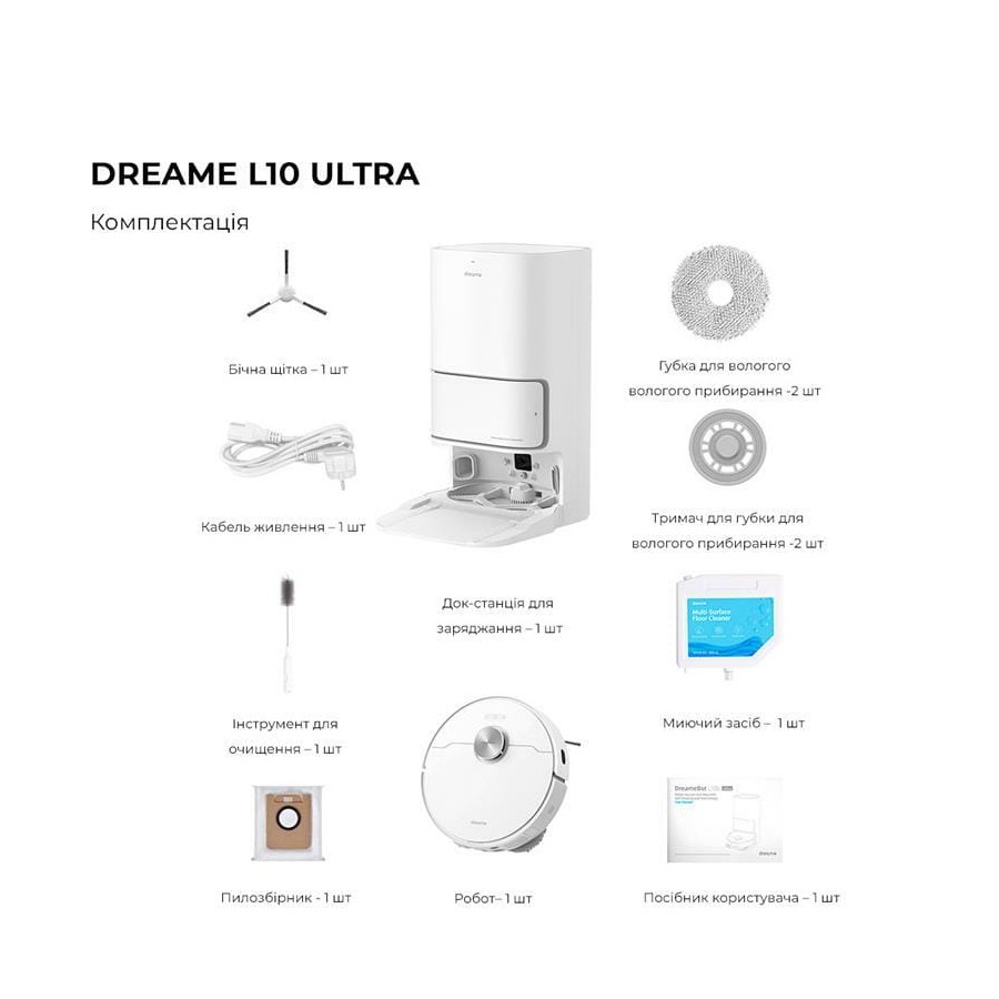 Dreame L10 Ultra - інноваційний робот пилосос 2 в 1, для сухого та вологого прибирання. Очищає всі типи твердих покриттів для підлоги (ламінат, паркет, лінолеум, кахель), а також ворсисті килими і ковролін.