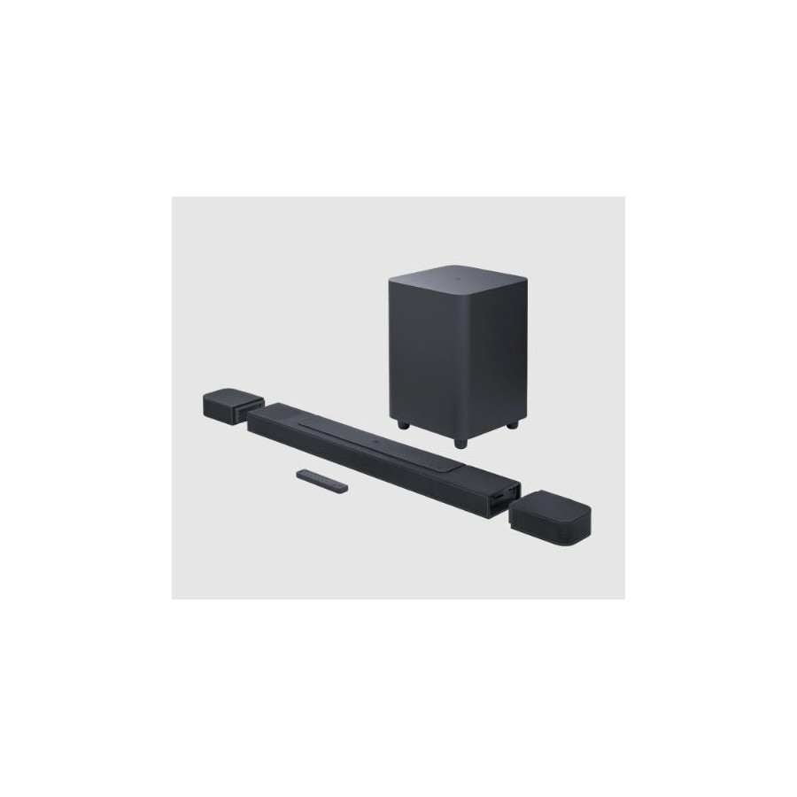 JBL Bar 1000 огорне вас сферою об'ємного 3D-звуку завдяки чотирьом випромінювачам, гучному сабвуферу і знімним бездротовим динамікам.