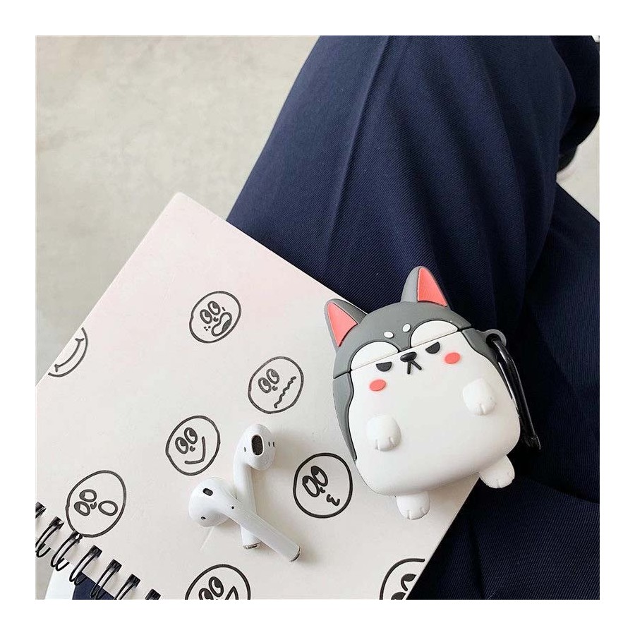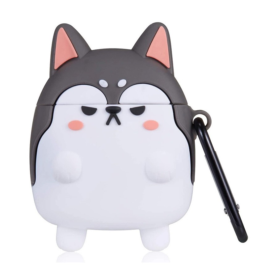 Силиконовый футляр Dogs для наушников AirPods 1/2 (Хаски / Серый)