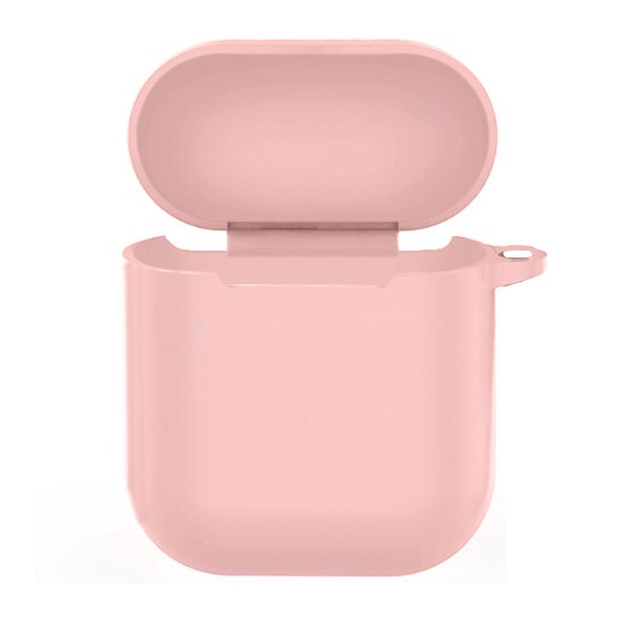 Силиконовый футляр New с карабином для наушников Airpods 1/2 (Розовый / Light pink)