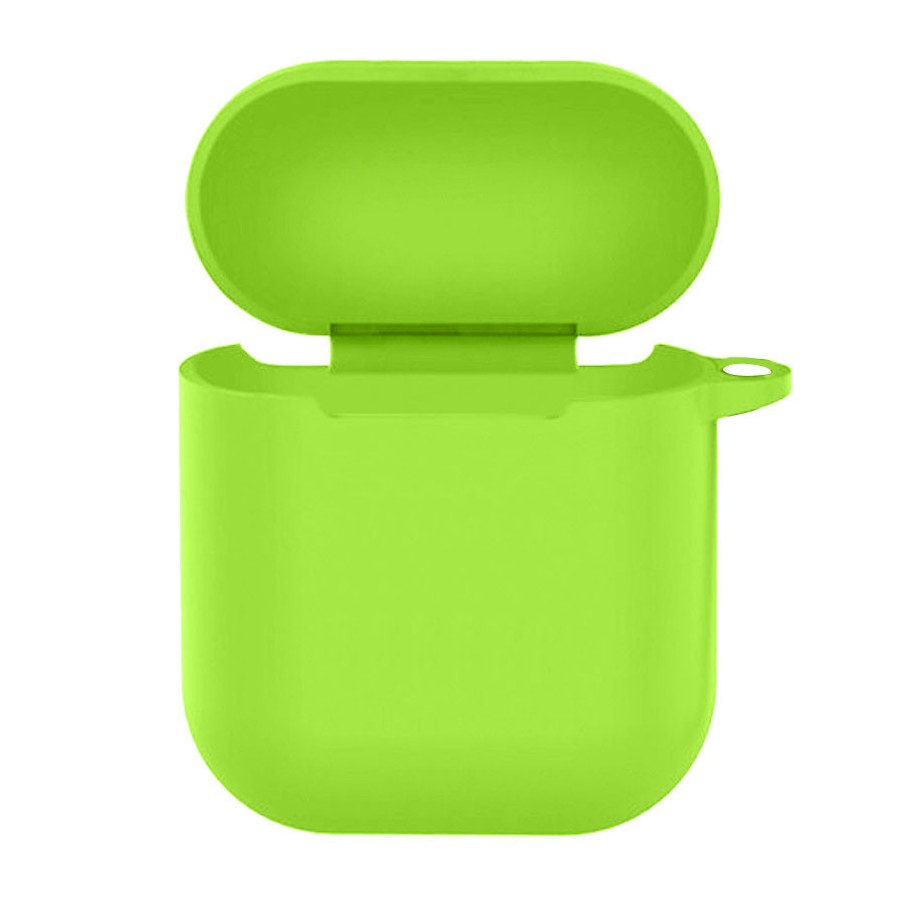 Силиконовый футляр New с карабином для наушников Airpods 1/2 (Салатовый / Neon green)