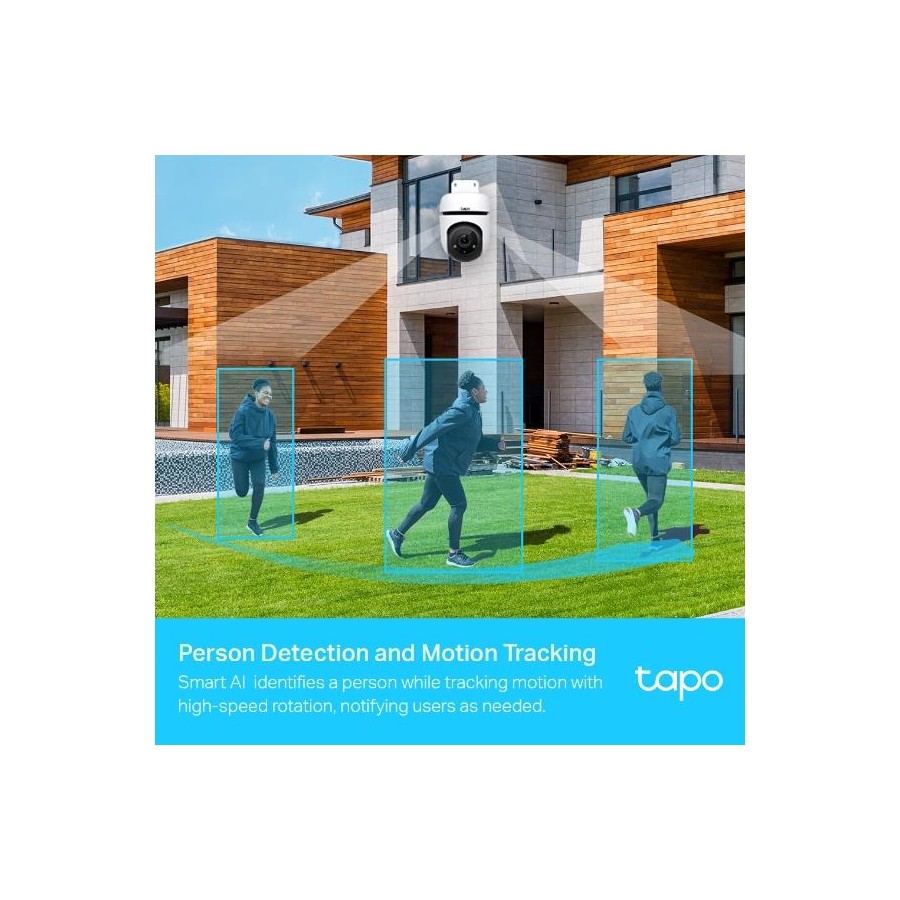 • Person Detection and Motion Tracking-Smart AI identifies a person while tracking motion with high-speed rotation, notifying users as needed.