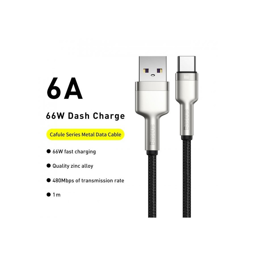 Baseus Cafule Metal Data Type-C 66W (2m) – кабель для заряджання та передачі даних, оснащений роз'ємом Type-C.
