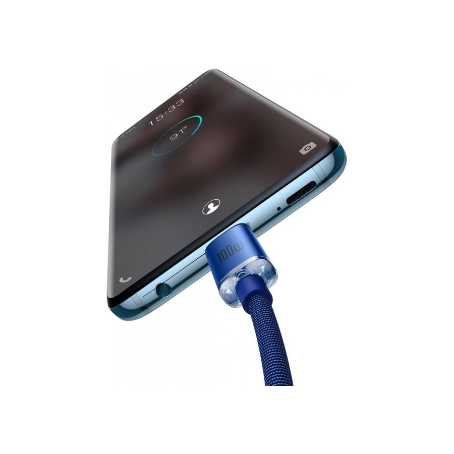 Обплетений кабель Baseus USB Type C — USB Type C серії Crystal Shine із міцною текстурою має додаткове підсилення в місці з'єднання штекера з кабелем. Тому він стійкий до згинів та розтягування. Всередині міститься 8-жильний мідний кабель, що завдяки інтелектуальному чіпу не нагріватиметься навіть під час одночасного наснаження та передачі даних.