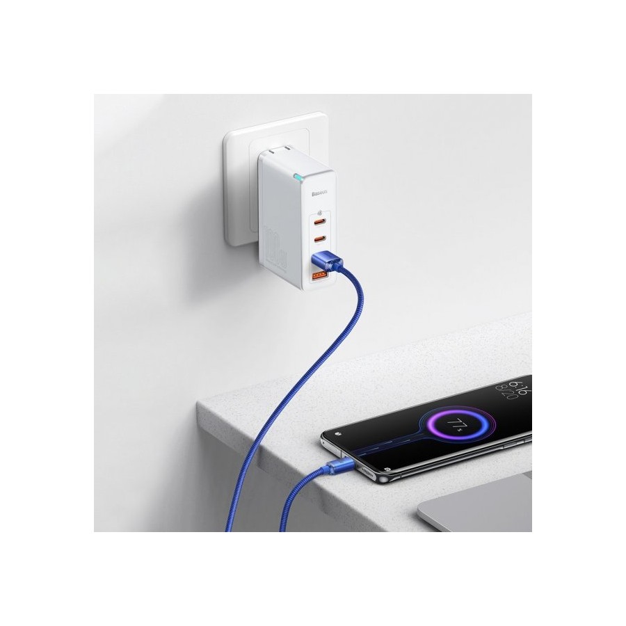 Кабель Baseus Crystal Shine Series USB For Type-C 100W 5A 1.2m - призначений для передачі даних, а також для дротової зарядки телефонів та планшетів із зарядним роз'ємом Type-C, а також сучасних ноутбуків MacBook, Xiaomi, Lenovo, HP, Asus та ін. Кабель має оптимальну довжину в 1,2 метри, а обплетення виконано з міцного нейлону. Кабель пропускає струм аж до 5 А, якого достатньо для якісної та швидкої зарядки. Підстава біля роз'єму виготовлено з термополірувану. тому внутрішні проводки в кабелі не зашкодять будь-яких згинання.