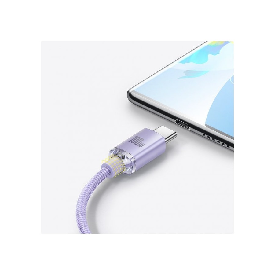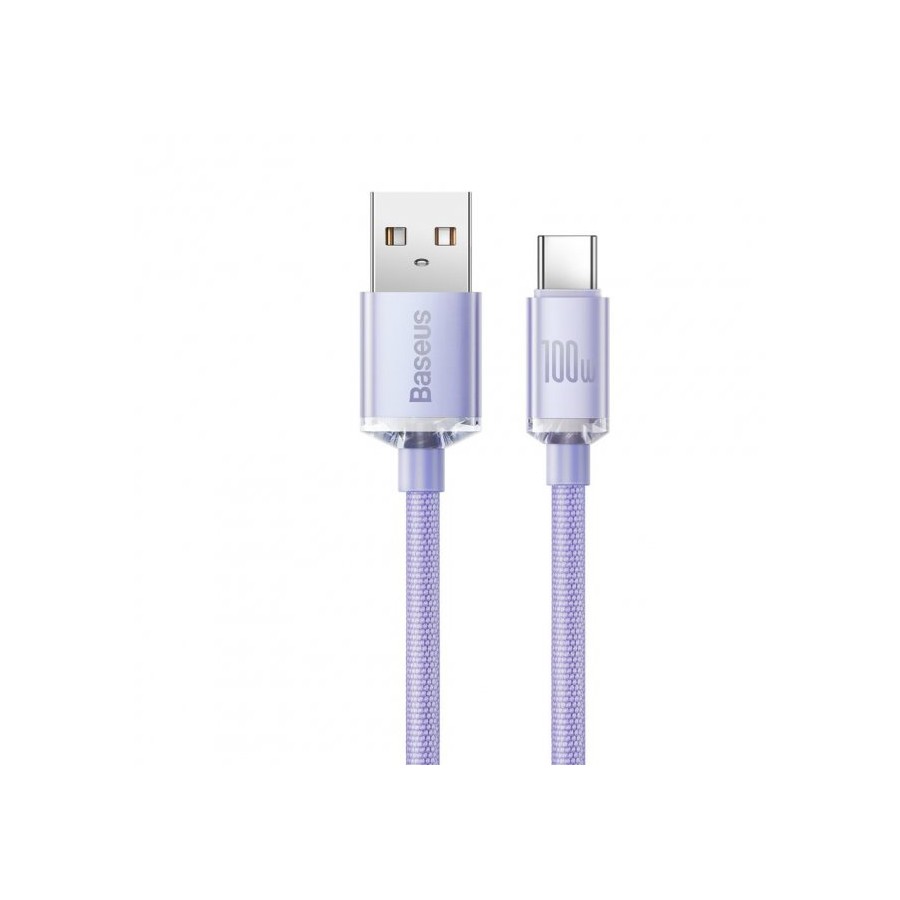 Кабель Baseus Crystal Shine Series USB For Type-C 100W 5A 1.2m - призначений для передачі даних, а також для дротової зарядки телефонів та планшетів із зарядним роз'ємом Type-C, а також сучасних ноутбуків MacBook, Xiaomi, Lenovo, HP, Asus та ін. Кабель має оптимальну довжину в 1,2 метри, а обплетення виконано з міцного нейлону. Кабель пропускає струм аж до 5 А, якого достатньо для якісної та швидкої зарядки. Підстава біля роз'єму виготовлено з термополірувану. тому внутрішні проводки в кабелі не зашкодять будь-яких згинання.
