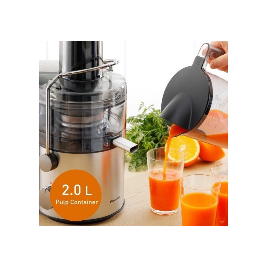 Максимальное извлечение сока с помощью мощной нарезки. Уникальная полностью металлическая мормышка Panasonic эффективно извлекает максимум сока, в результате чего получается однородный сок без мякоти, который легко пить даже детям. S-образный резак цельнометаллической мормышки прочно прорезает твердый центр плода, а нож с малым углом полностью извлекает его. Сетчатый фильтр тонкой очистки отделяет сок от мякоти, так что вы всегда получаете напиток с гладкой текстурой.