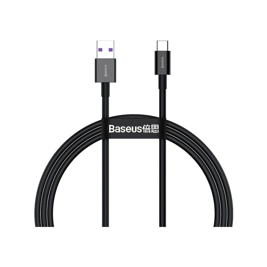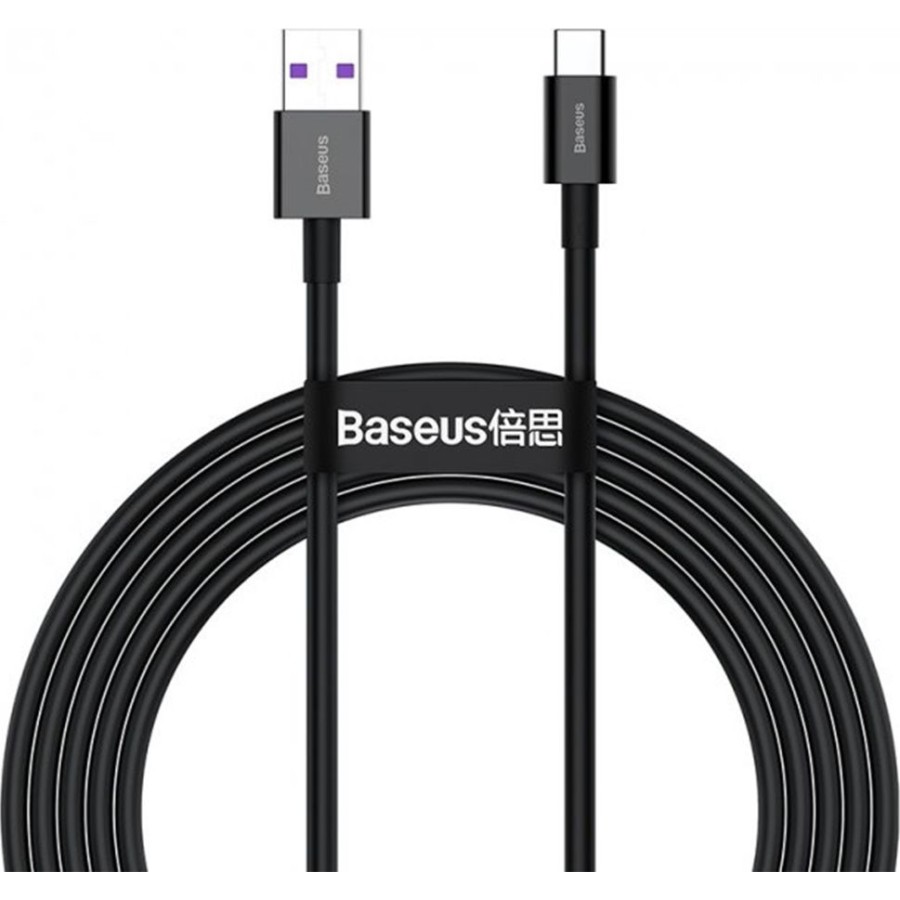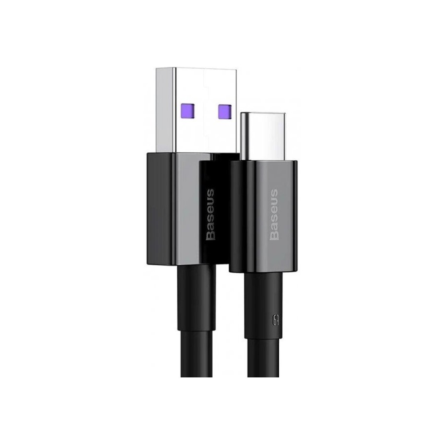 Baseus (CATYS-A01) — кабель чорного кольору для зарядки телефону, оснащений USB роз'ємом з одного боку та Type-C з іншого.
