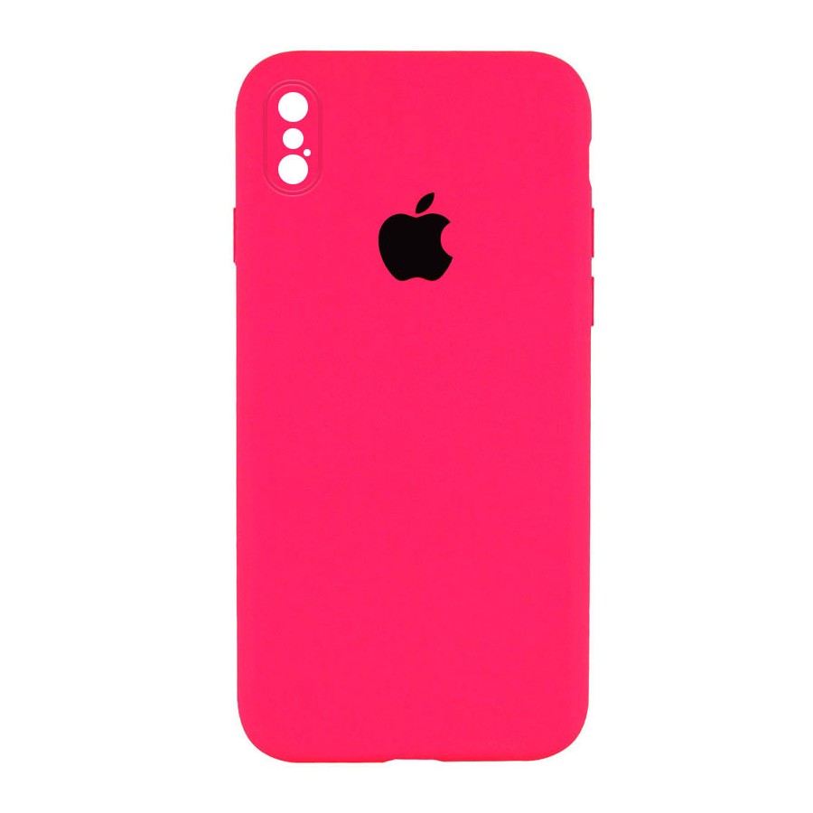Чохол Silicone Case Square Full Camera Protective (AA) для Apple iPhone XS / X (5.8") Рожевий / Barbie pink