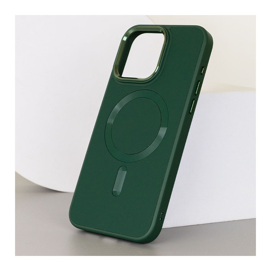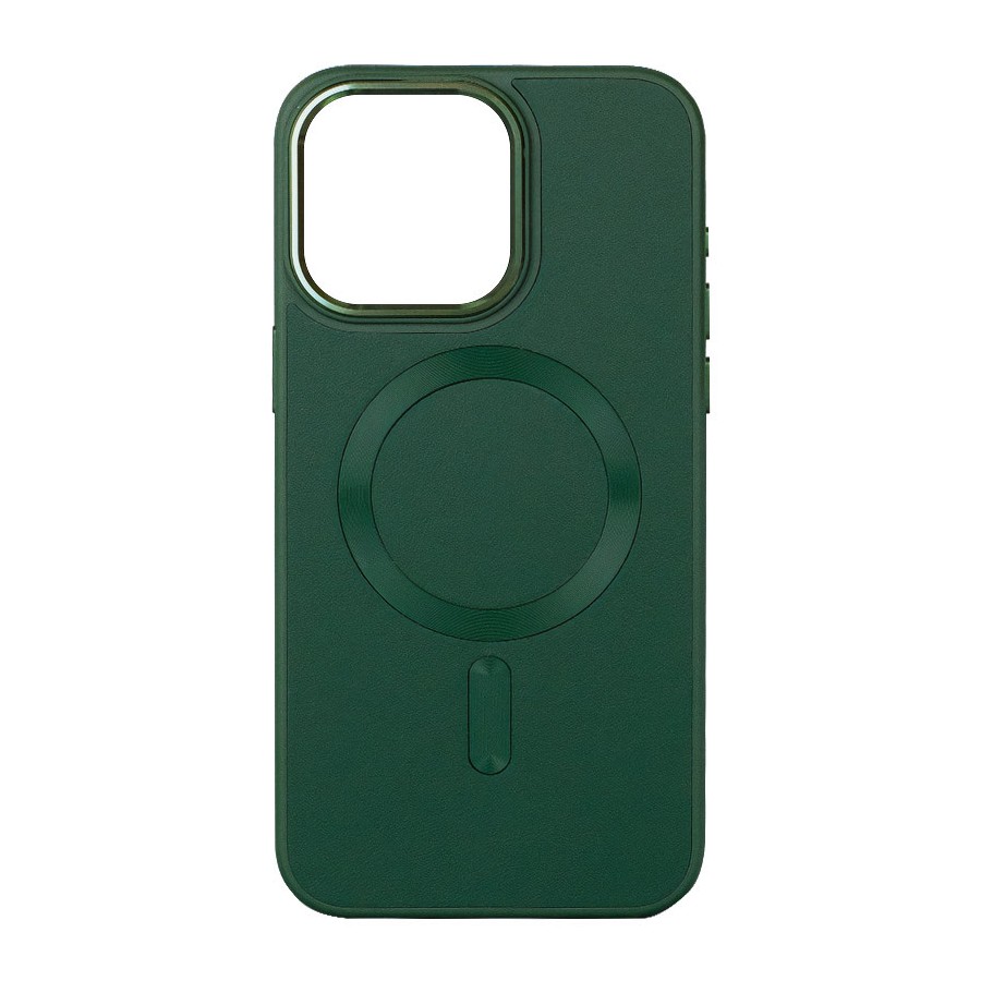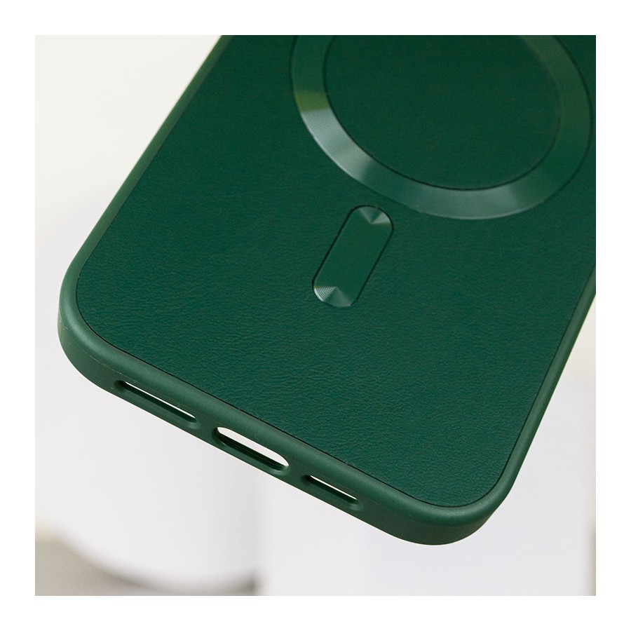 Шкіряний чохол Bonbon Leather Metal Style with MagSafe для Apple iPhone 13 (6.1") Зелений / Pine green