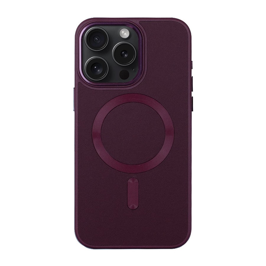Шкіряний чохол Bonbon Leather Metal Style with MagSafe для Apple iPhone 13 Pro (6.1") Бордовий / Plum