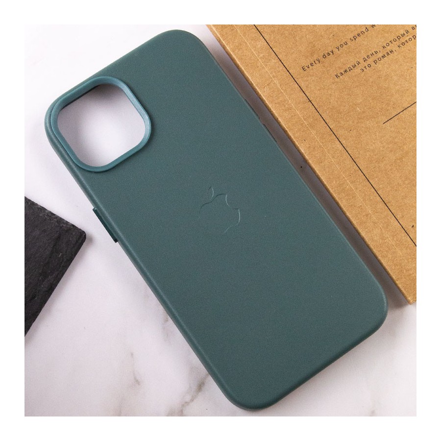 Шкіряний чохол Leather Case (AA Plus) with MagSafe для Apple iPhone 14 (6.1") Pine green