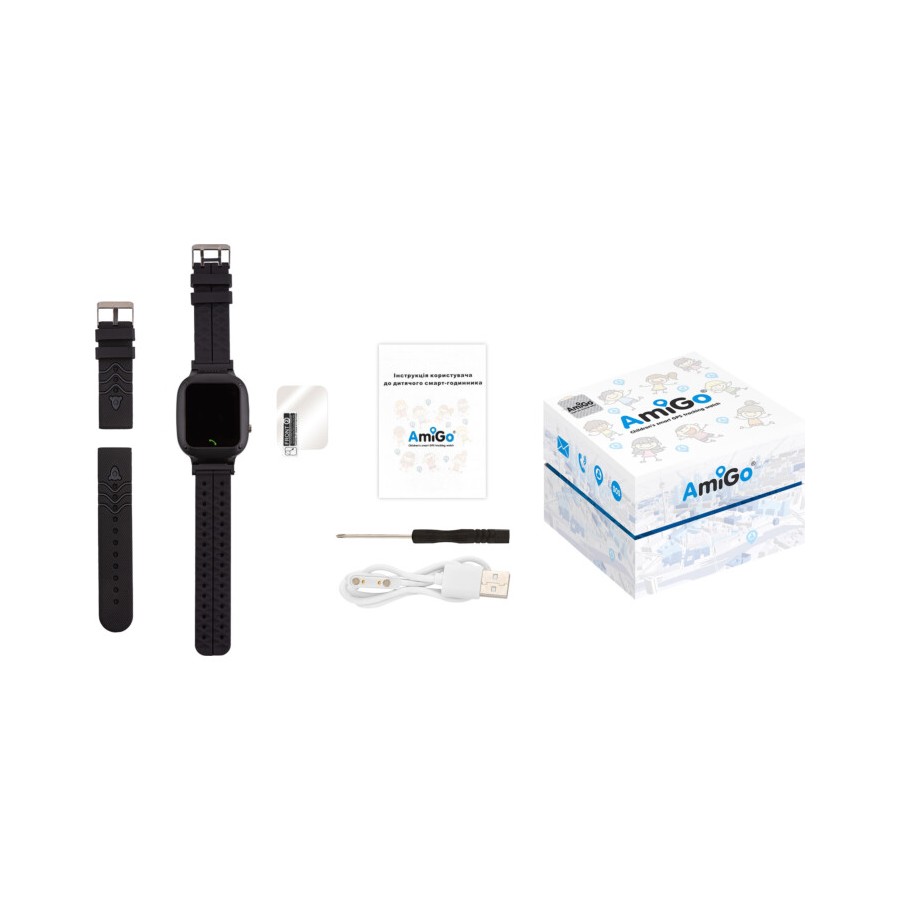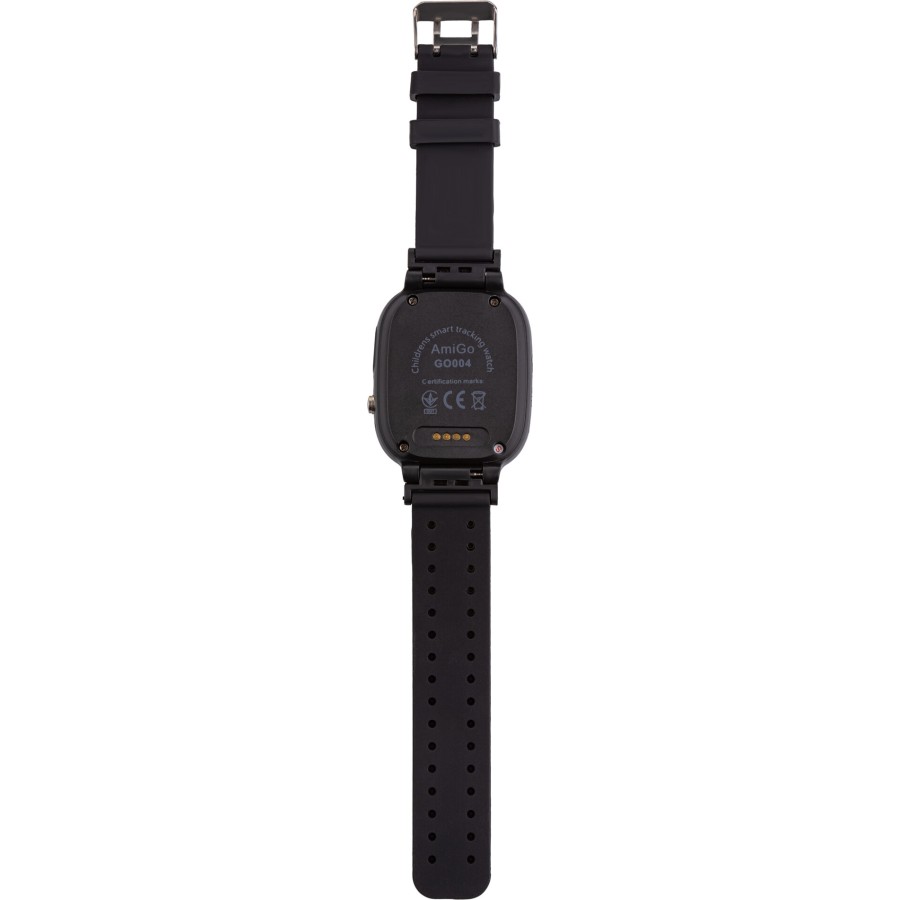 Вбудована камера дозволить швидко зробити селфі, а власна пам'ять об'ємом 32 Мб відповідає за збереження особистих даних. Невеликий світлодіодний ліхтарик підсвітить шлях в темряві. Особлива кнопка SOS дозволить дитині подати сигнал тривоги безпосередньо з годинника, а функція швидкого набору – натисканням пари кнопок дзвонити на номери, занесені в пам'ять гаджета. Дизайн AmiGo GO004 Splashproof Camera + LED легко змінити за рахунок знімних різнокольорових ремінців, а надійна застібка з пряжкою гарантує безпечну фіксацію браслета на руці.