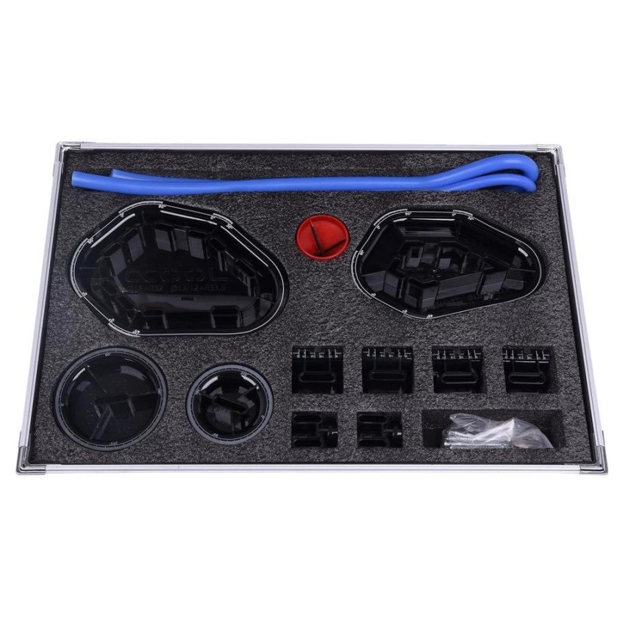 There has been a huge increase in fans of water cooling and a lot rely on HardTubes for aesthetic and practical reasons. It is important that the tubes are bent with precision to fit the loop perfectly. To achieve this, the Alphacool Eiskoffer Basic contains several tools to bend the HardTubes optimally. Only a hot air gun and a saw are needed to cut the HardTubes to the desired length. Using the Eiskoffer Basic will ensure that you can create perfect bends like a professional. It also takes the guess work away from the build, meaning the assembly of the water cooling will be much easier.