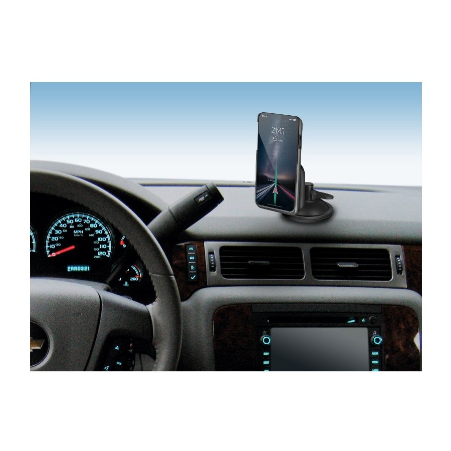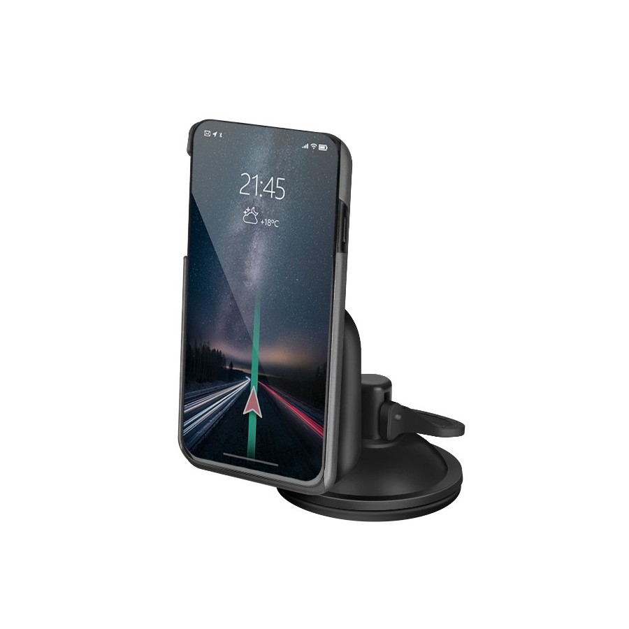 Тримач із зручною фіксацією основи на приладову панель автомобіля та потужним магнітом (4 магніти) для надійної фіксації смартфона під час поїздки. Також може бути зафіксовано на лобовому склі. Надійна фіксація на лобовому склі та на панелі приладів, навіть з текстурною поверхнею, створенням вакууму за допомогою присоски.