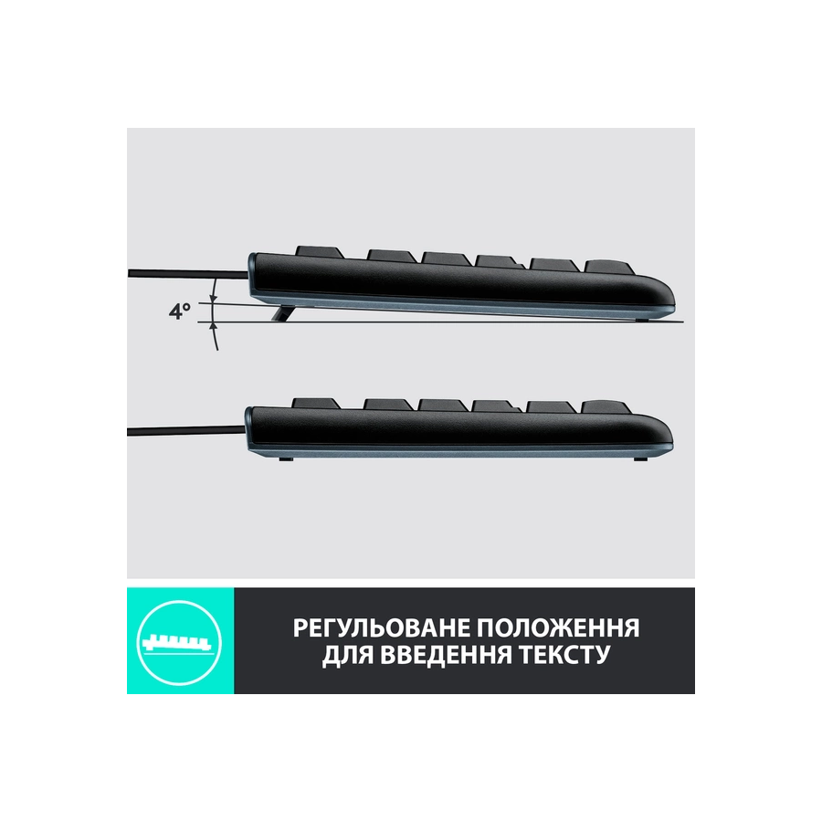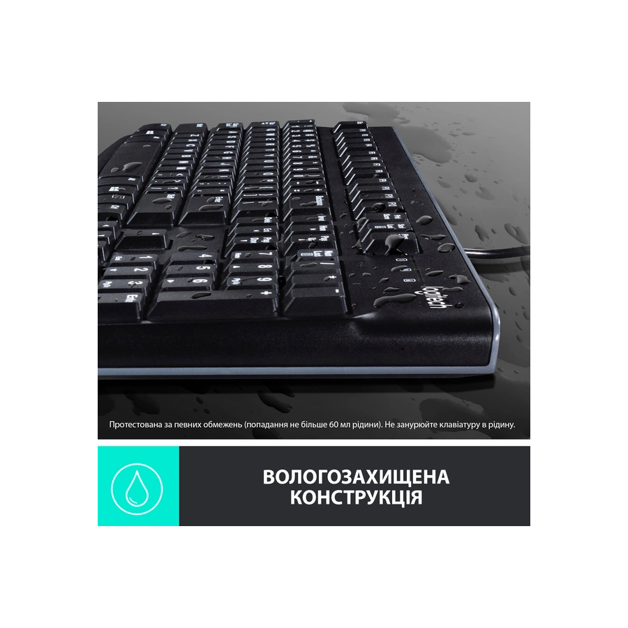 Ця клавіатура створена, щоб довго служити, завдяки дизайну, що захищає від вологи, міцним клавішам і міцним поворотним ніжкам із регульованою висотою.