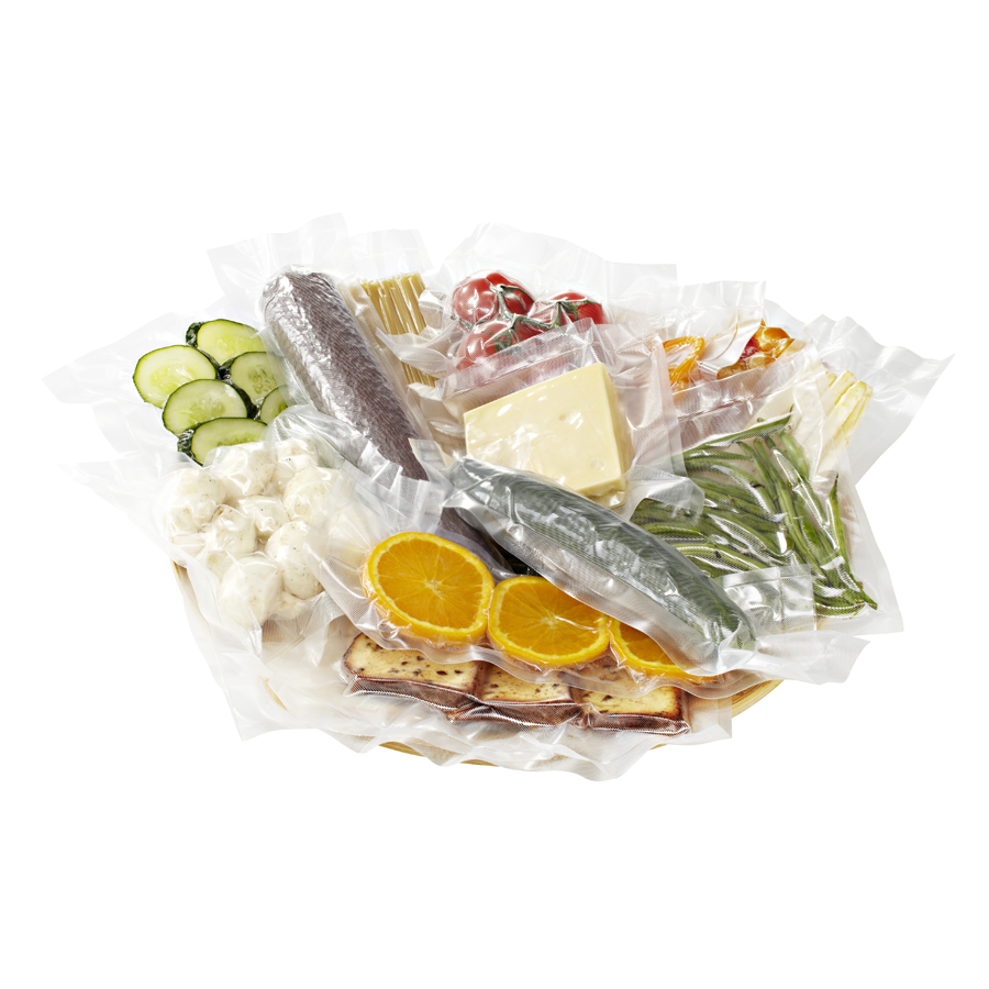 Пакети для вакуумування складаються з двошарової плівки. Зовнішній шар - поліамід - забезпечує герметичність і непроникність. Внутрішній шар - поліетилен має рифлену поверхню, що забезпечує більш якісне вакуумування, сприяє максимальному видаленню повітряного середовища, тим самим продовжуючи термін придатності продуктів.