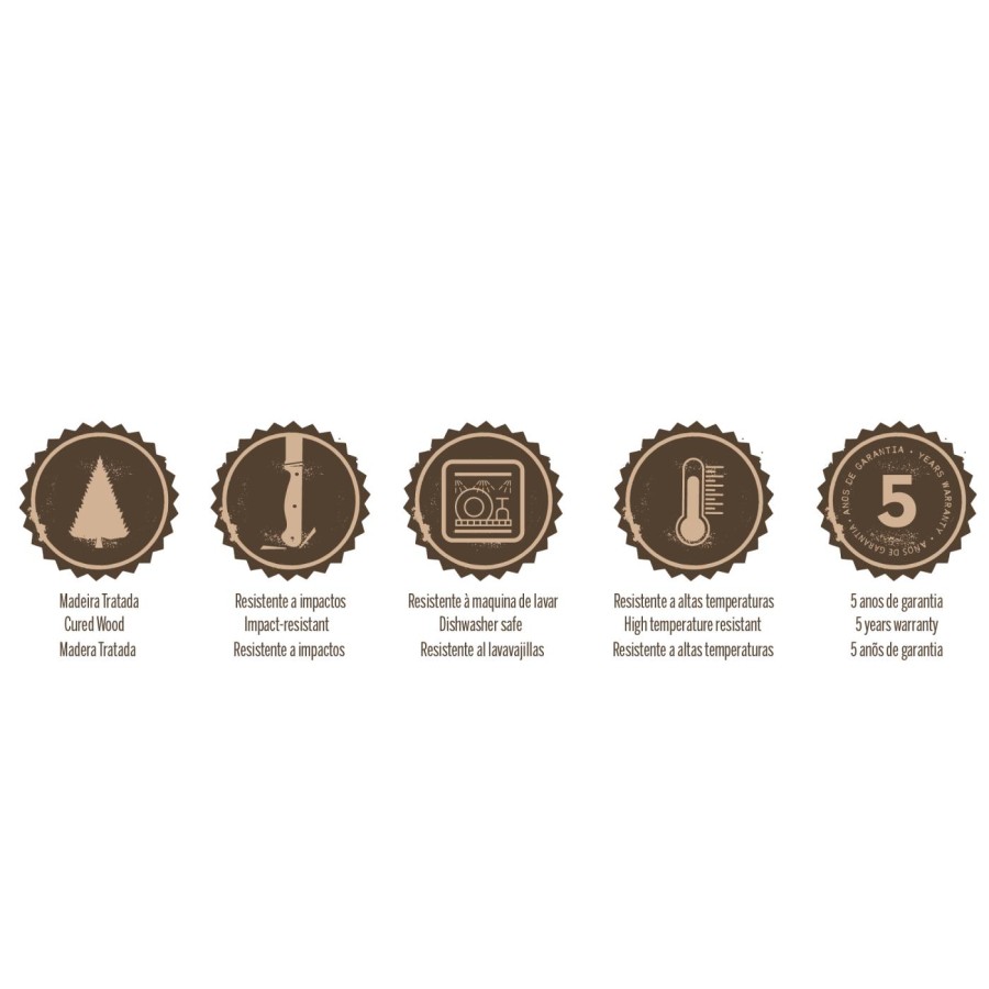 - Оброблені ручки з натуральної обробленої деревини стійкі до ударів і високих температур, що забезпечує більшу міцність і довговічність.
