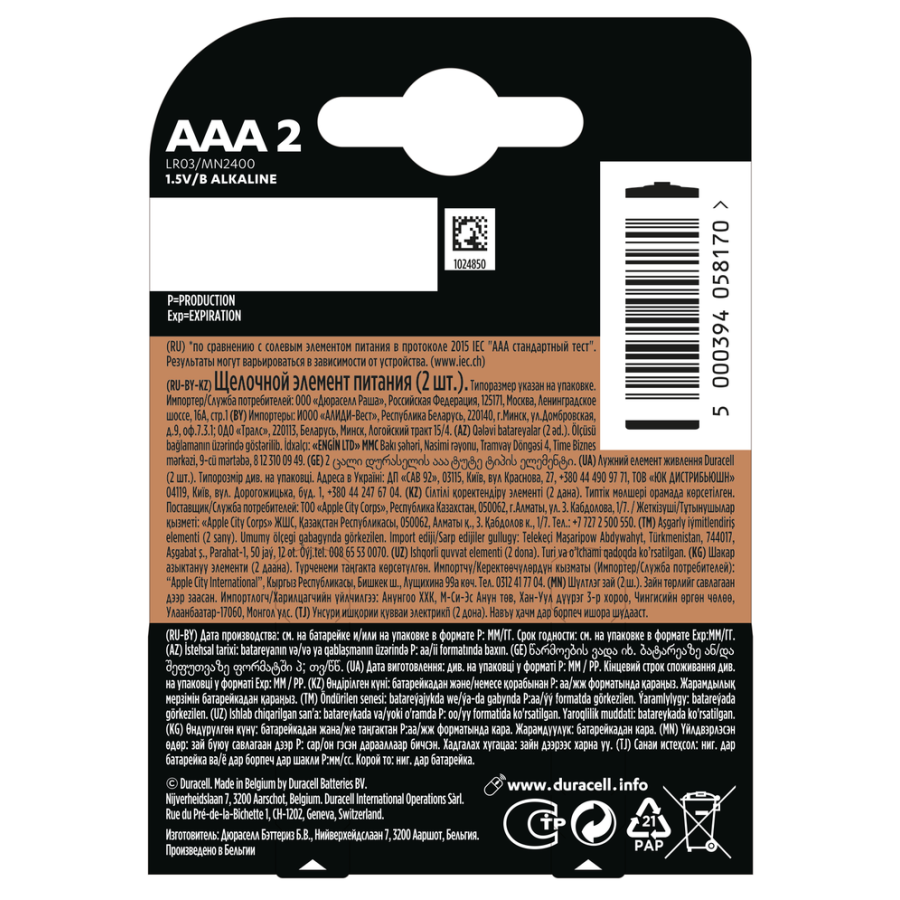 Батарейка DURACELL LR03 MN2400 1x2 шт.