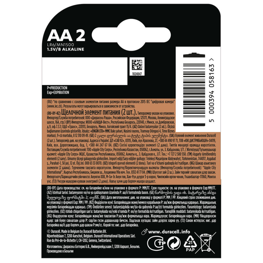 Батарейка DURACELL LR06 MN1500 1x2 шт.