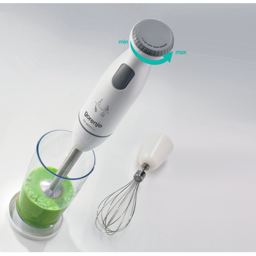 Після завершення роботи просто зніміть занурювальну насадку та промийте під проточною водою. Крім того, блендер не потребує багато місця для зберігання.