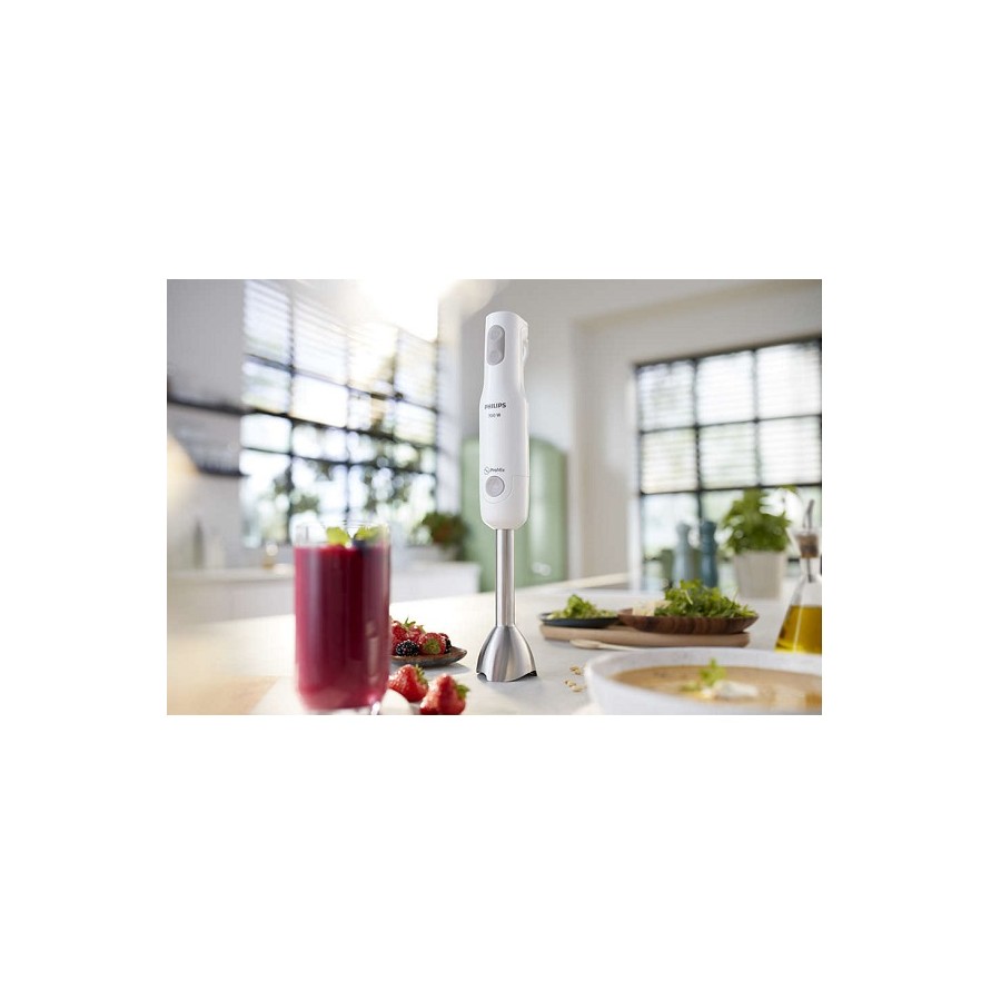 Спеціальна зігнута форма нижньої частини ніжки ручного блендера захищає від розбризкування і безладу під час змішування.