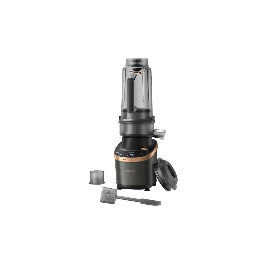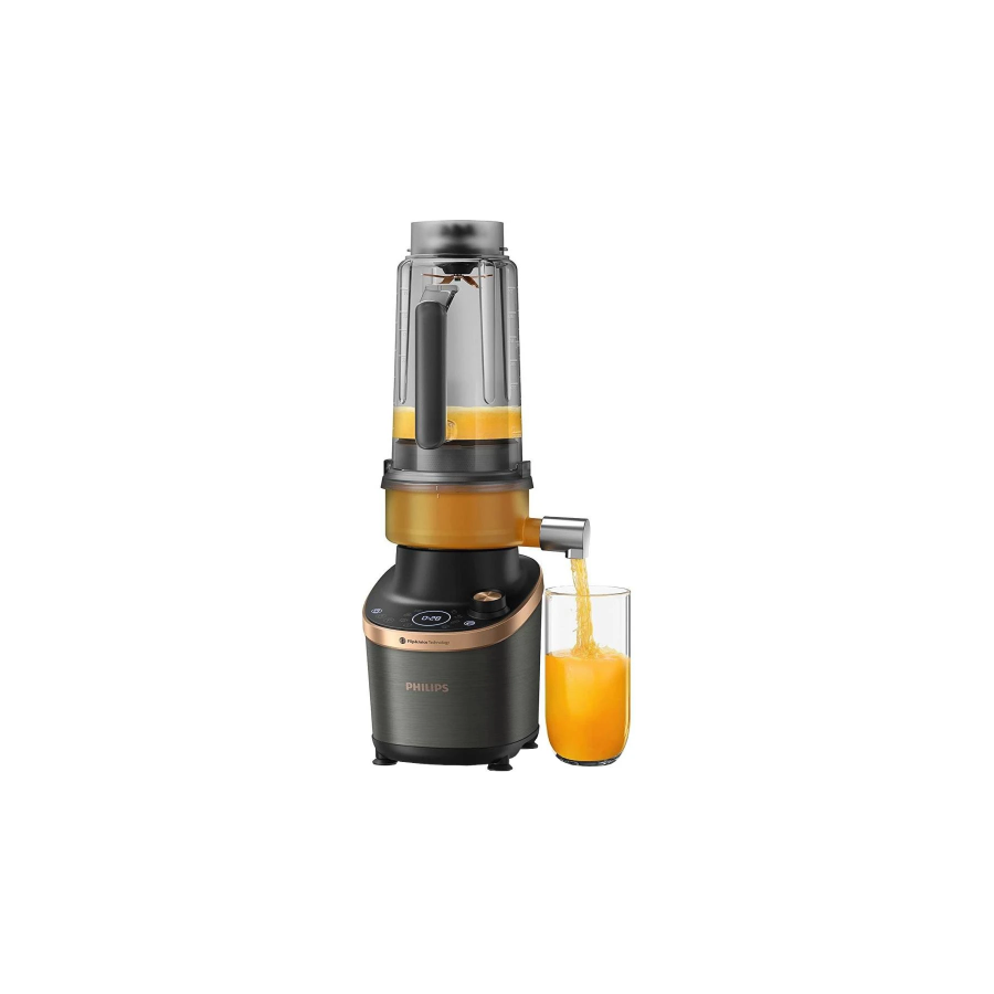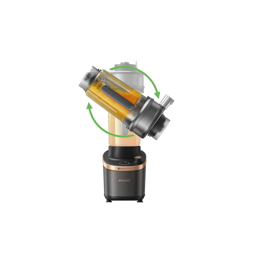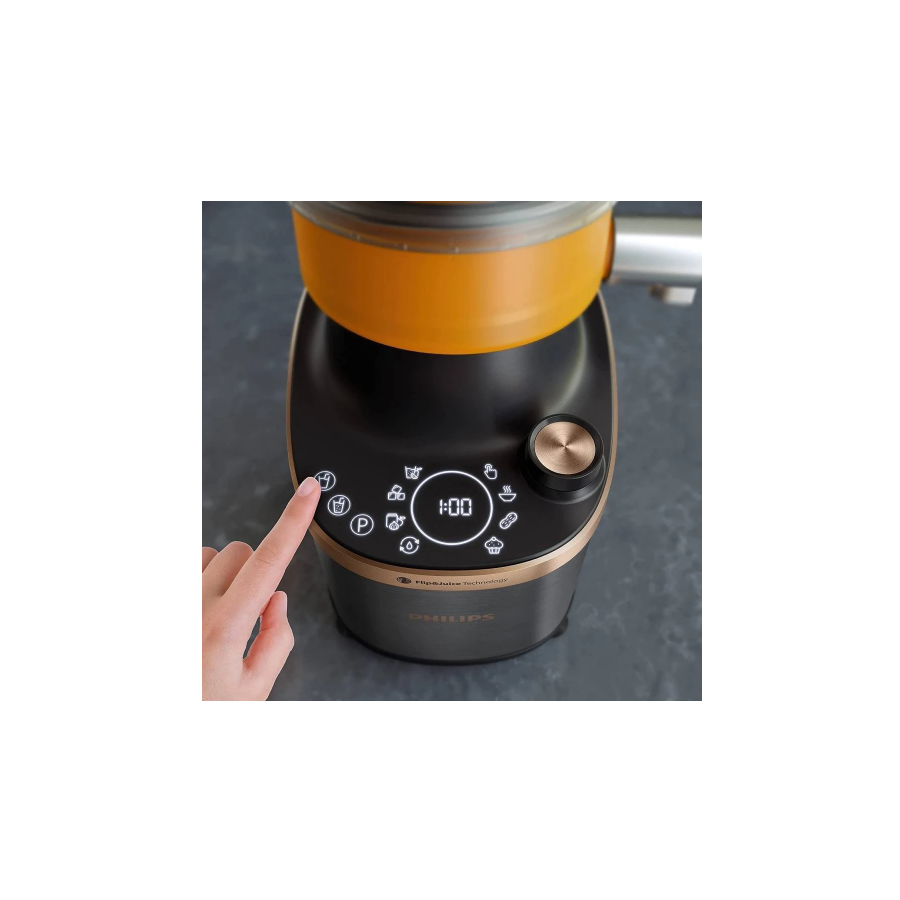Новий блендер Philips Flip & Juice – наш перший високошвидкісний блендер із модулем для віджимання соку. Завдяки революційному дизайну чаші та вбудованому фільтру ви зможете готувати напої з текстурою, адаптованою до вподобань вашої родини. Наш найдосконаліший блендер пропонує найрізноманітніші варіанти напоїв: від смузі з ідеально шовковистою текстурою до очищених соків або соків із м’якоттю. Він поєднує функції змішування і віджимання соку, завдяки чому ви економите простір на своїй кухні.