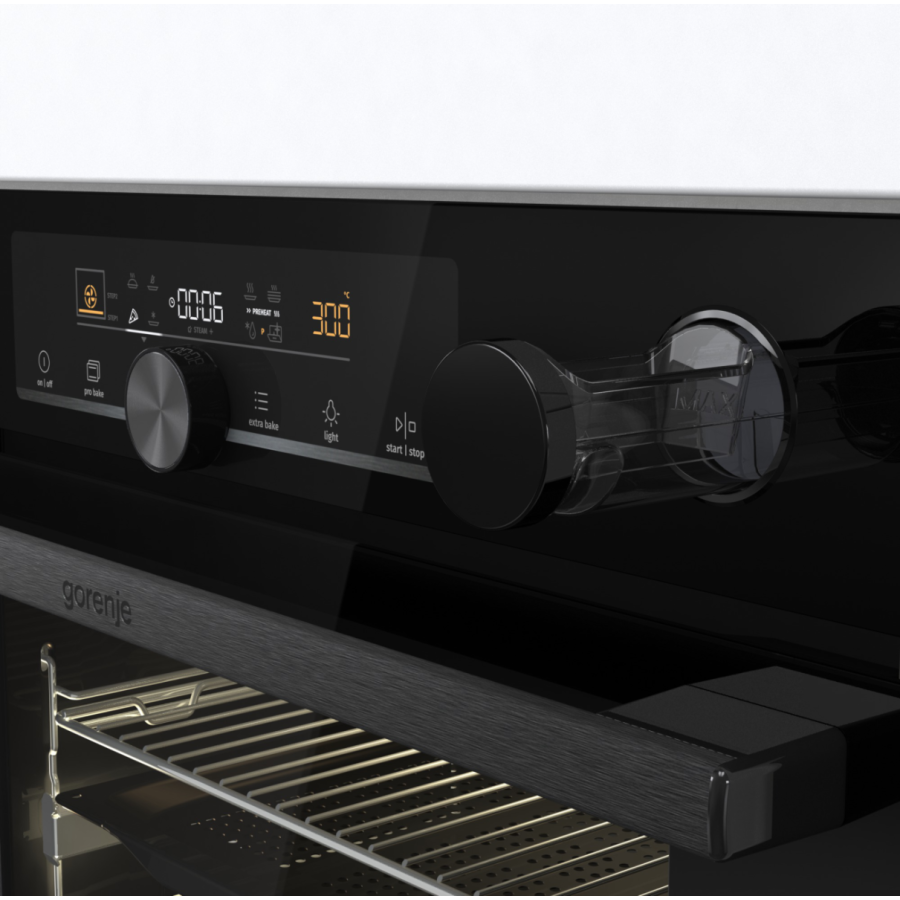 Духовки Gorenje відомі своєю інноваційною формою внутрішньої камери, яка стала їхньою візитною карткою. Східчаста форма HomeMade створена подібно до традиційної дров'яної печі та забезпечує ефективнішу циркуляцію повітря в порівнянні з іншими продуктами на ринку. Тепер ми оновили форму HomeMade, і циркуляція повітря додатково покращилася завдяки новій конструкції нагрівальних елементів і новому розташуванню отворів подачі повітря. Це забезпечує однакову температуру по всьому простору духовки. Ваші страви більше не будуть підгорілими з одного боку та недоготовленими з іншого.