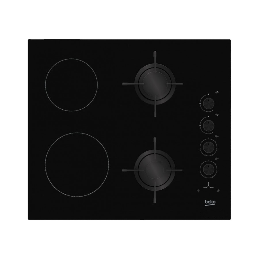 Комбінована варильна поверхня (газ + електро) Beko HILM 64120 S, ширина 60 см. Непоганий варіант для дачі або місцевості, де є тимчасові відімкнення електроенергії. Газовий нагрів легко змінити на Hi-Light конфорки. Очищення поверхні не завдасть труднощів завдяки гладкій склокераміці.