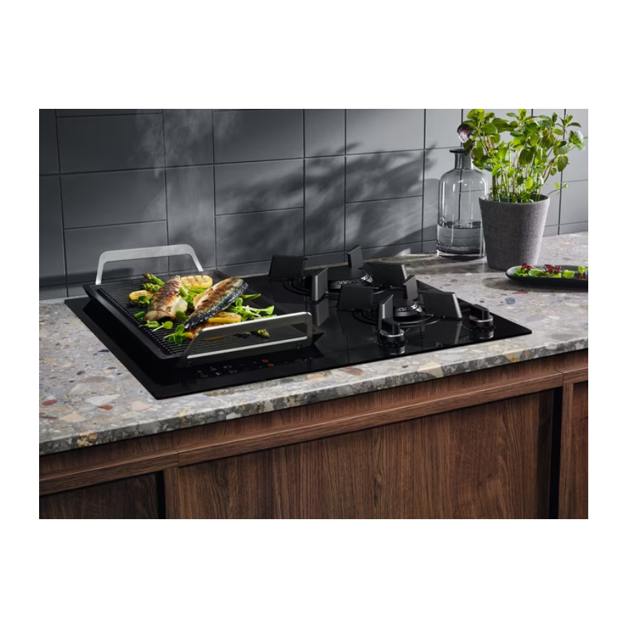 Завдяки електропідпалу, таймеру, звуковій сигналізації, функції паузи (Stop&Go), швидкому нагріванню (Booster) та підсвічуванню панелі керування, ця поверхня забезпечує зручність та ефективність у приготуванні їжі. Чавунні решітки додають стійкості та довговічності, а механічне та сенсорне керування дозволяє легко налаштовувати необхідні параметри.