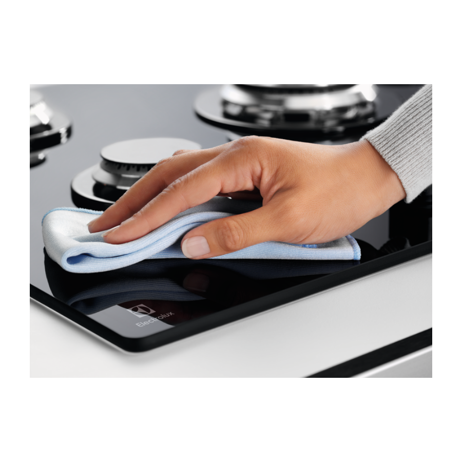 Склокерамічний верх цієї газової варильної поверхні легко витерти ганчіркою: збережіть чистоту та красу своєї кухні!