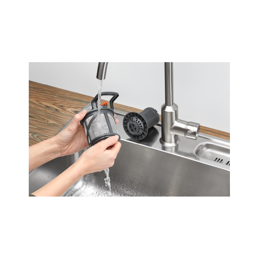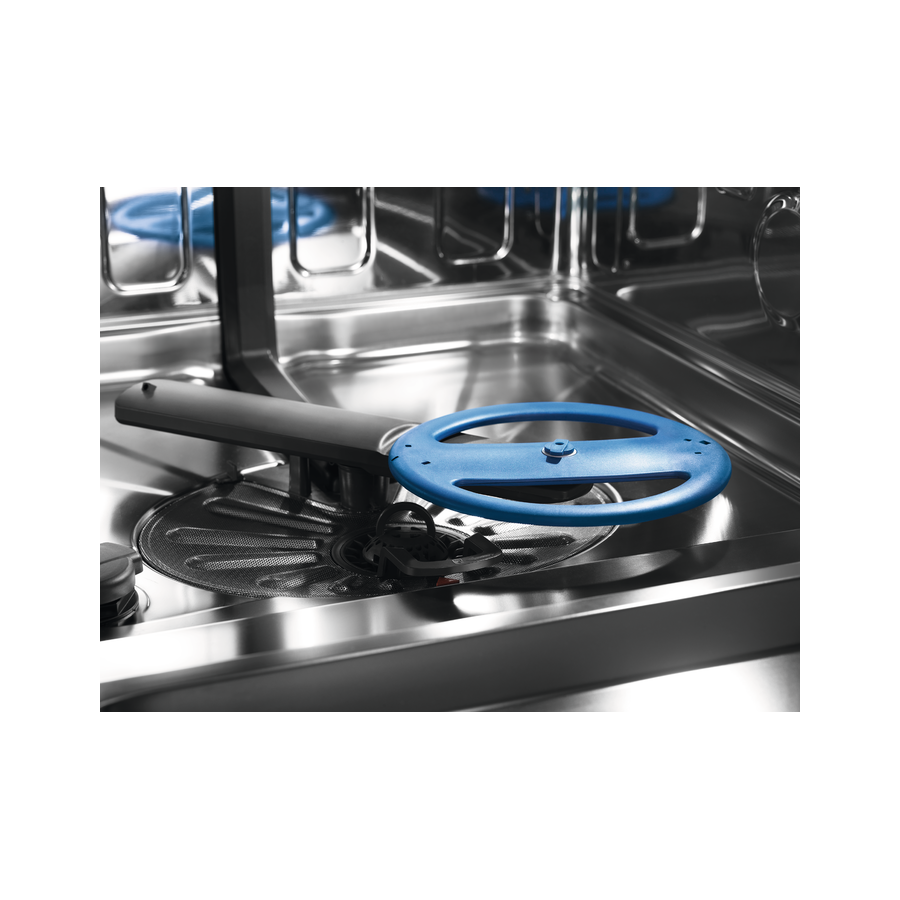 SatelliteClean - це бездоганна чистота: порівняно зі звичайними приладами якість миття поліпшується до трьох разів. Подвійне обертання розпилювача з постійною зміною кута струменів ретельніше відмиває навіть габаритний посуд.