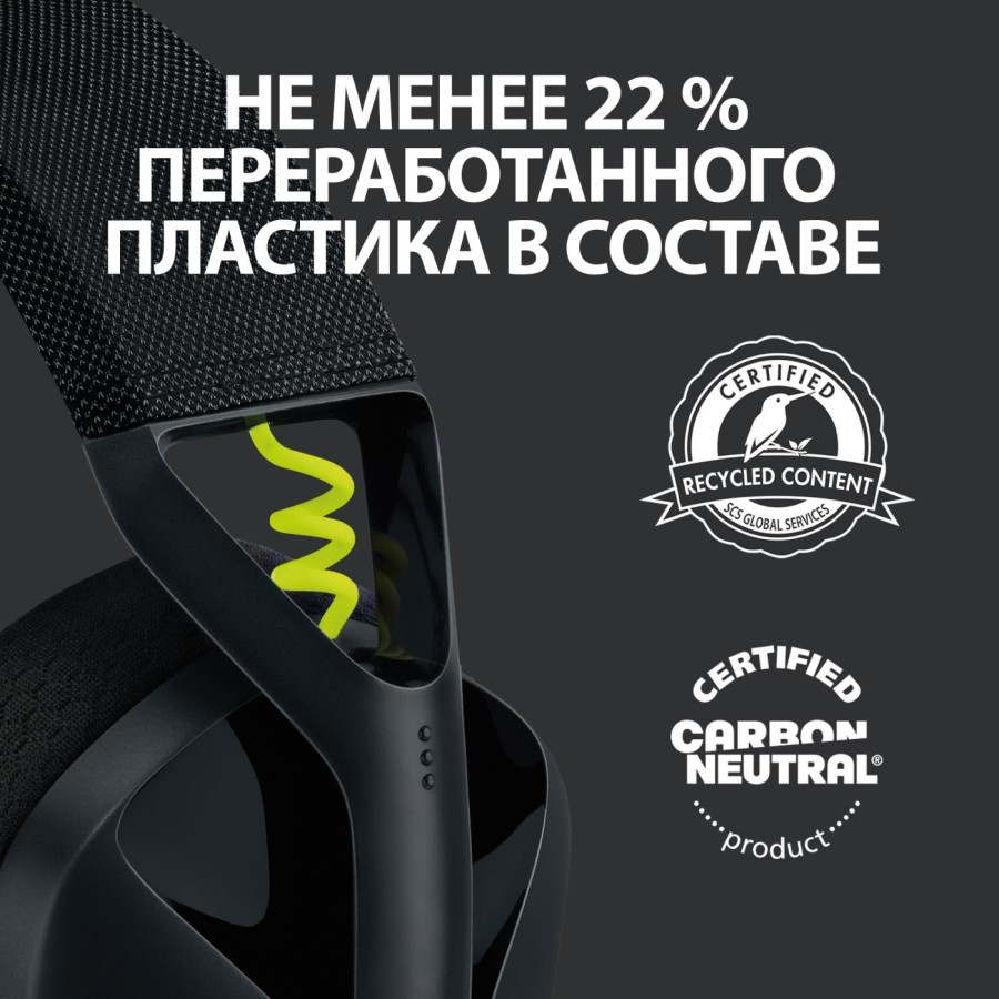 Навушники Logitech G435 LIGHTSPEED WGH відрізняються від інших своєю продуманою оболонкою, яка, до того ж, зроблена відповідно екологічним нормам. Перероблений пластик став основою конструкції (не менше 22% в складі сировини). Нагорода CarbonNeutral® показує мінімальний карбоновий слід на етапі розробки і створення моделі. Картонна упаковка зроблена з сертифікованої FSC® деревини.