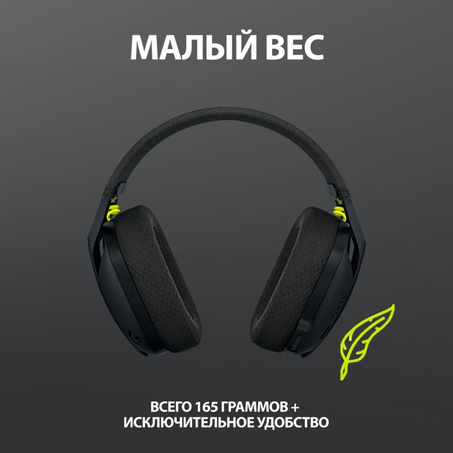 Конструкція навушників Logitech G435 LIGHTSPEED WGH використовує м'які матеріали для амбушур, які допомагають не створювати тиску на голову, а також зберігають правильну вентиляцію. Наповнювач з ефектом пам'яті адаптується до анатомії користувача, що робить посадку гранично комфортною.