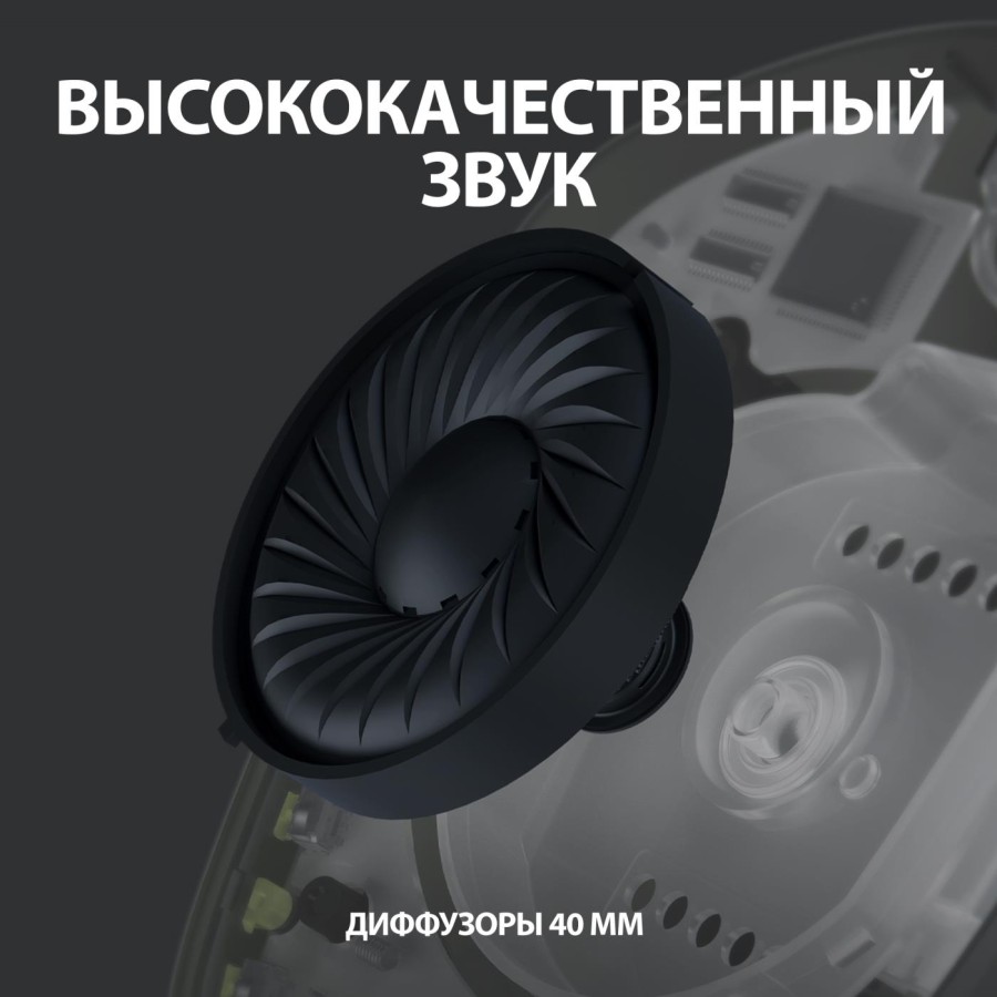 Відмінною особливістю моделей компанії Logitech стала компактна оболонка, яка не відчувається на голові при тривалому носінні. Таким чином, використовуючи навушники вагою 165 г, ви не будете змушені робити перерви в перегляді кіно, онлайн-геймінгу або розмовах з рідними – ніякої втоми і дискомфорту.