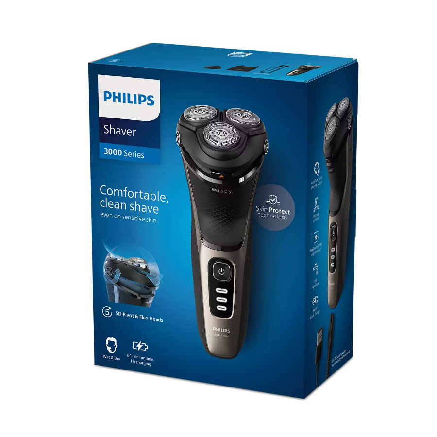 Згинаючись і обертаючись у п'яти напрямках, голівка повторює кожен вигин вашого обличчя – зрізаючи щетину трохи вище рівня шкіри для чистого, комфортного гоління навіть чутливої шкіри.