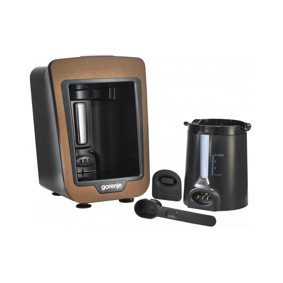 Для приготування напою, що бадьорить, у крапельній кавоварці GORENJE використовується мелена кава. Об'єм бойлера для води становить 0,27 л. Модель має протикрапельну систему, яка не дозволить проливатися каві на стіл при відсутності кавника. Кавоварка має потужність 735 Вт.