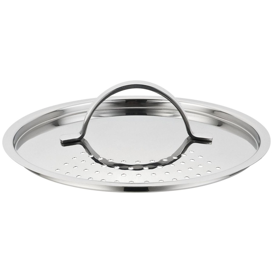 • Кришка з нержавіючої сталі з дренажними отворами для зливу рідини та випуску пари під час приготування