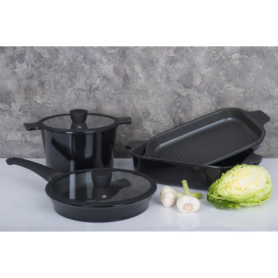 Каструля з литого алюмінію серії Zitrone від Ringel відрізняється товстостінною конструкцією та надійним антипригарним покриттям, завдяки чому цей вид посуду є максимально універсальним рішенням для приготування безлічі видів страв.