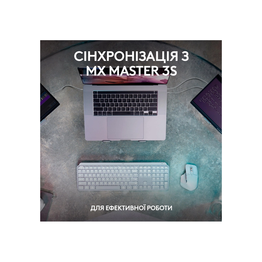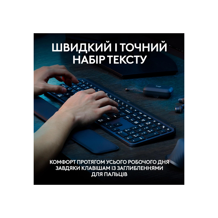MX Keys S з легким профілем та округленими клавішами, які повторюють форму пальців, забезпечить швидкий, точний та тихий набір тексту.