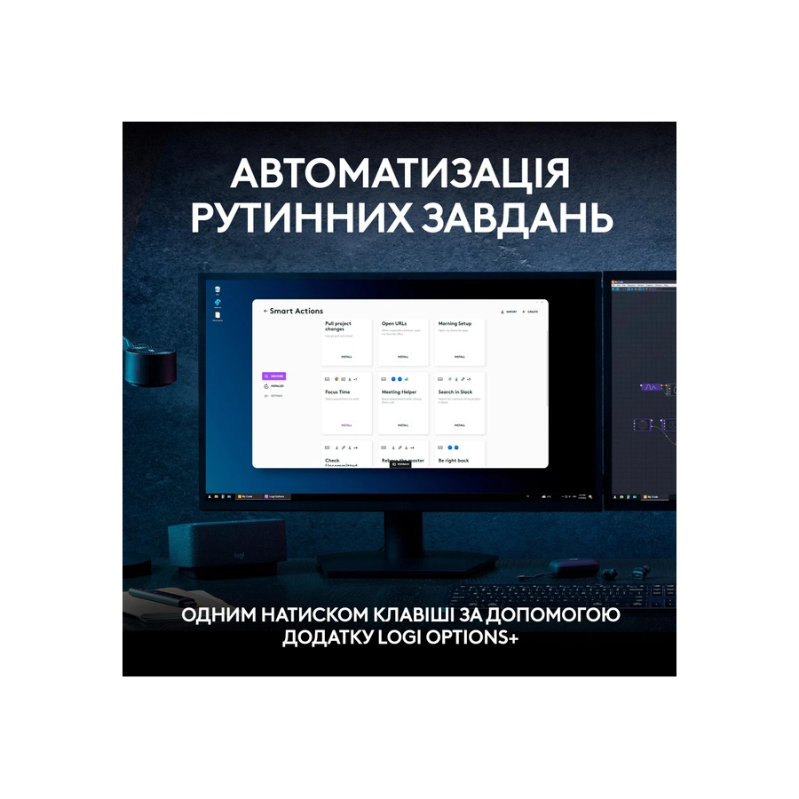 Легко створюйте та діліться скороченнями Smart Actions, що зберігають час, із допомогою програми Logi Options+, яка виконує декілька дій одним натисканням клавіші.