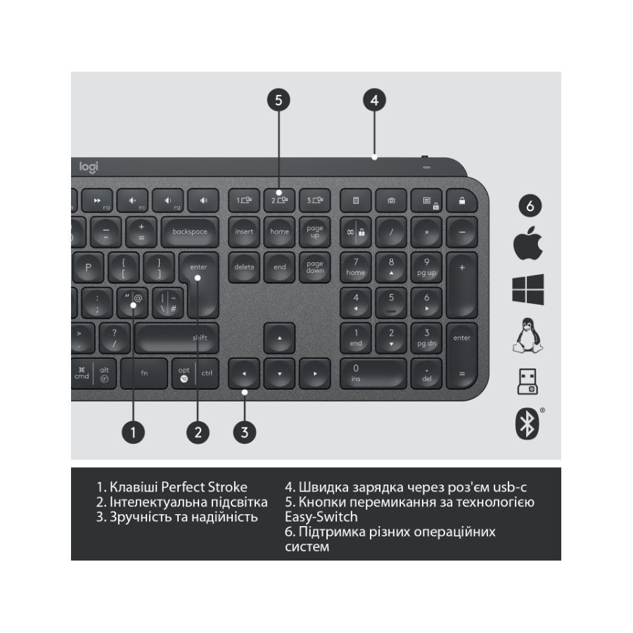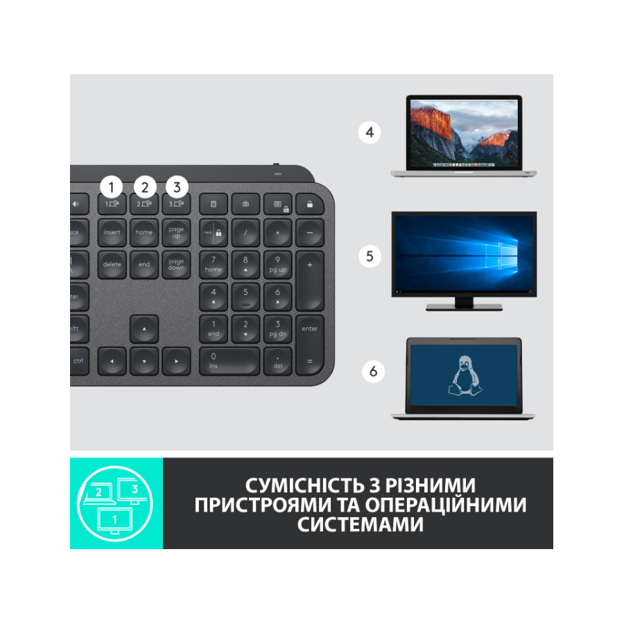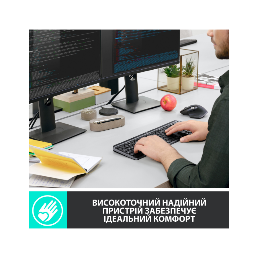Серія MX розроблена для людей із вузькоспеціалізованими потребами робочого процесу, таких як кодери, креативні працівники й аналітики. Завдяки MX Keys for Business користувачі можуть друкувати на клавіатурі, створеній для стабільності та точності, де кожне натискання клавіші плавне, природне та точне. Якщо вони можуть думати про це, вони можуть це освоїти.