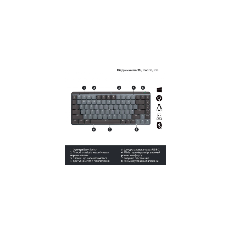 Налаштуйте свою клавіатуру, перевірте залишок заряду батареї, виберіть ефекти підсвітки, змініть функції поєднаних клавіш з Fn, налаштуйте профілі для окремих програм через оновлений, зручний інтерфейс Logi Options+.