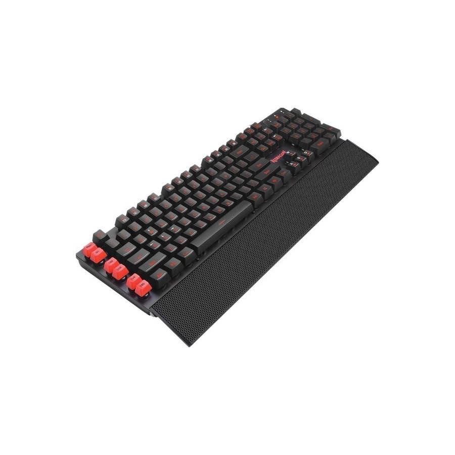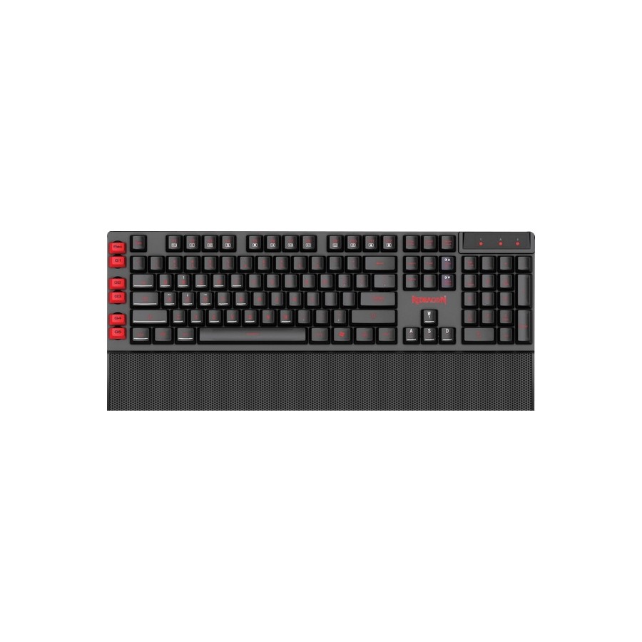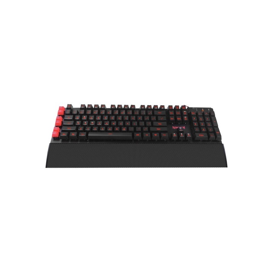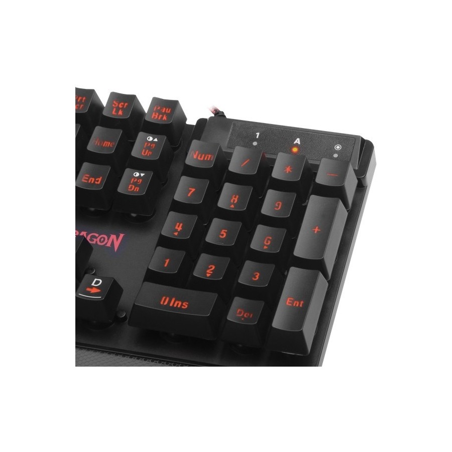 Redragon Yaksa - геймерська клавіатура з підсвічуванням, лазерним гравіюванням клавіш, а також підставкою для рук. Може виконувати роль ігрової й офісної клавіатури (залежно від вибраного режиму), вміє записувати макроси, а також оснащена кнопками ANTI GHOST. Підсвічування має 7 доступних кольорів, які створюють пристрою яскравий і агресивний вигляд. Стабільну передачу сигналу забезпечує позолочений конектор. Підставка для рук запобігатиме швидкій втомі, тому допоможе гравцеві проходити важкі ігрові раунди.