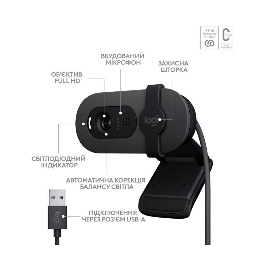 Комп.Камера LOGITECH BRIO 100 FHD GRAPHITE (960-001585)