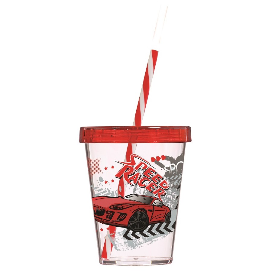 Склянка з трубочкою HEREVIN Speed Racer 0.45 л виготовлена з якісного харчового пластику безпечного для здоров'я дітей. Склянка міцно закривається кришкою, яка захищає вміст від проливання. Вона прекрасно підходить як для використання вдома, так і для використання в дорозі.