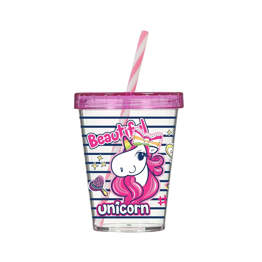 Склянка з трубочкою HEREVIN Unicorn 0.45 л виготовлена з якісного харчового пластику безпечного для здоров'я дітей. Склянка міцно закривається кришкою, яка захищає вміст від проливання. Вона прекрасно підходить як для використання вдома, так і для використання в дорозі.