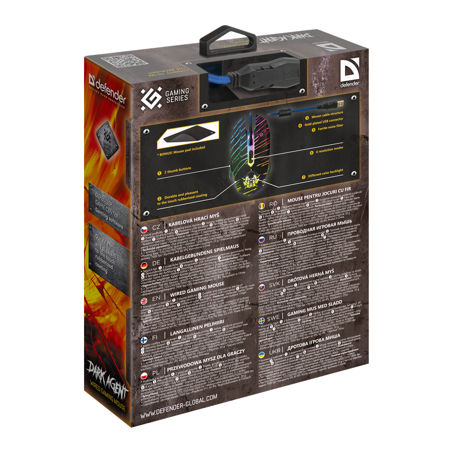 Кнопка перемикання dpi дозволяє вибрати швидкість переміщення курсора (1200/1600/2400/4800/7200/12800 dpi).